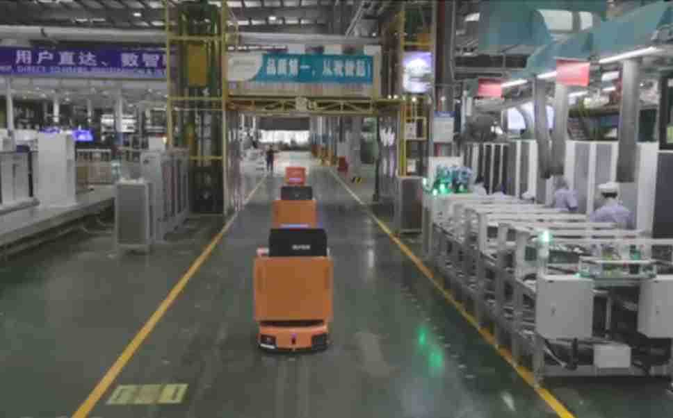 为车载冰箱物流配送打造的智能解决方案,,,包含产中物流通过潜伏举升AMR搬运至线边,,产后成品物流智能仓储,,流程包含产中物流智能齐套入库,,线边安灯叫料AMR智能配送至线边,,成品入库、、、出库,,,通过无人堆高车机器人,,,智能仓储管理替代人工作业管理,,,实现更高存储、、、、更高效率、、更具柔性化的解决方案。。。